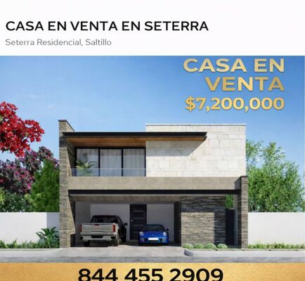 Descripción Residencia de Lujo en Venta al Norte de Saltillo — Fraccionamiento Terra COMPLETAMENTE EQUIPADA. Ubicada frente a camellón, esta hermosa casa destaca por su diseño contemporáneo, excelente orientación y abundante luz natural. Terreno: 202 m2 Construcción: 294 m2 Construida con block térmico, ventanería doble y acabados de alta calidad, que brindan excelente aislamiento térmico y acústico. ? Cocina integral equipada con parrilla, campana, torre de hornos, tarja, lavavajillas y cubiertas de cuarzo. Cubiertas de granito en lavabos y carpintería en roperías y muebles bajo lavabos. ? 7 minisplits frío/calor. Altura interior de 3 metros que brinda amplitud y elegancia. Jardín. Powered by EasyBroker Hidroneumático y cisterna de 3,000 litros. Fraccionamiento cerrado con vigilancia 24/7, servicios subterráneos, parques privados y hermoso paisajismo. Cuenta con oficina y cuarto de servicio con baño completo. Excelente ubicación al norte de la ciudad, cerca de colegios y centros comerciales. Se entrega en mayo 2026 $7,200,000